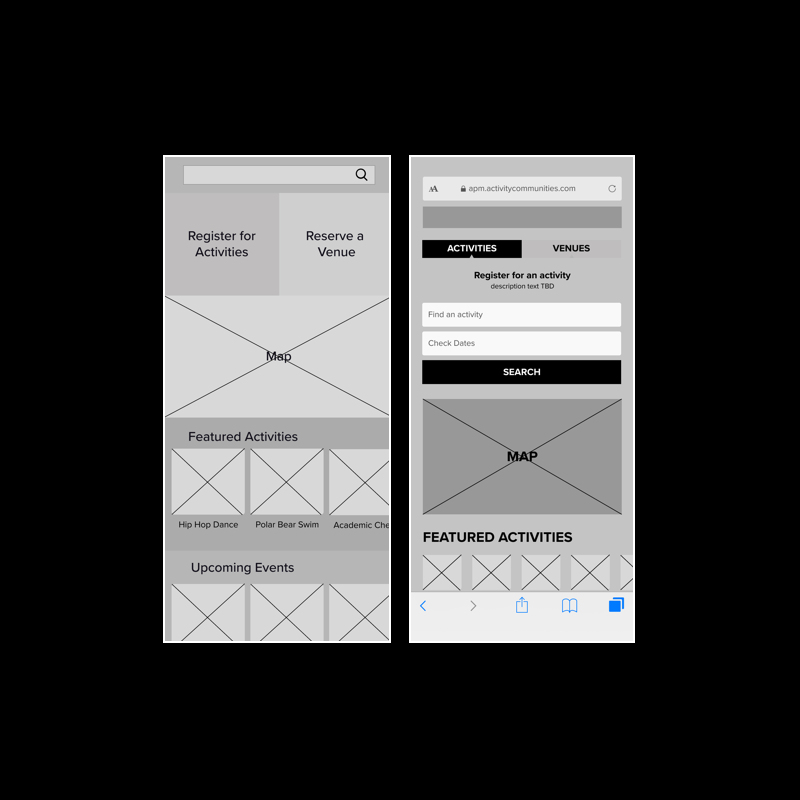 For an in-depth restructure, we looked to solve two flows that broke primary objectives of the site: the user paths to activity registration and facility reservation.